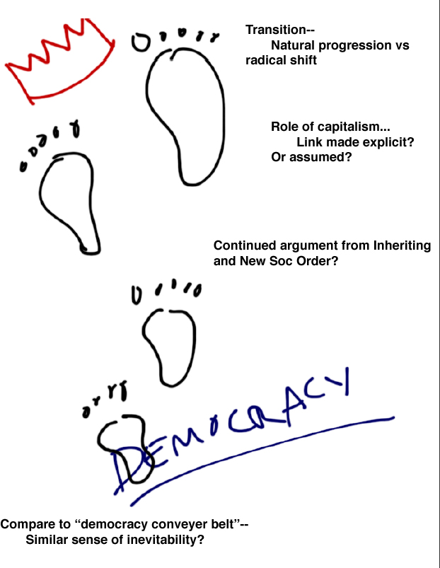For most, this may not seem worth the time or effort—especially to produce something that will ultimately be relegated to a box under the bed or a forgotten dropbox link (though I should note that most of my images take under 10 minutes). But give it a try. See if drawing and diagramming forces you to think more critically about your sources, your evidence, your assumptions, or, most importantly, your arguments. If for no other reason, remember that you spend enough time at your computer already. Live a little.