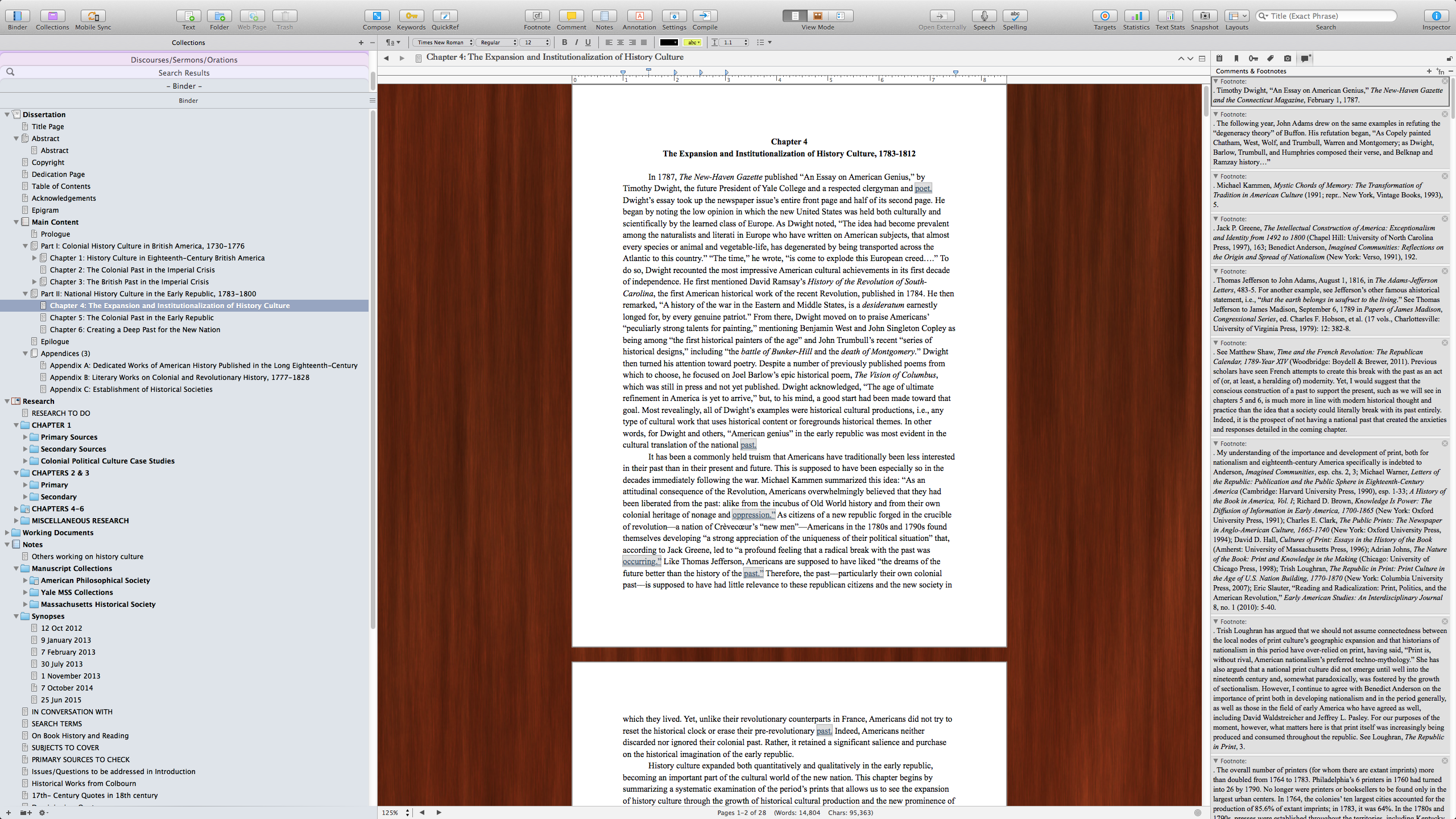 A few years ago as a pre-ABD graduate student, I wrote a post for the blog that has proved to have a longer shelf-life than most. That post, “Digital Workflow for Historians,” laid out how I used two programs, Papers and Scrivener, to manage my research and writing process. At the end of that post, I offered to share my project template and Chicago-style Compile (or export) preset. Over three years later, I still get emails on a monthly basis asking for those files. Following a discussion on Twitter last week about using Scrivener, it seemed the time was right to revisit the topic and to show how I ended up using Scrivener throughout the dissertation process, from organizing my research to producing drafts and revisions of chapters. Continue reading