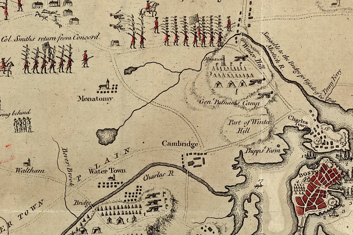 Like many, Amos Doolittle struggled to turn in a decent first draft of American history. The 21 year-old engraver, later known as the “Paul Revere of Connecticut,” arrived in Lexington and Concord shortly after April 1775. Anxious to capture the battles’ action and aftermath, he chatted with local residents. He sketched terrain. For Doolittle, a trained silversmith, it was a chance to experiment with a craft he had yet to master. Part of what he produced, a set of four views storyboarding the “shot heard round the world,” hangs in the Boston Public Library’s new exhibit, “We Are One: Mapping America’s Road from Revolution to Independence.” By Doolittle’s lights, Massachusetts makes for a furious and frenzied tableau: gusts of redcoats’ gunpowder hazing the sky, and colonial ranks splintering on the advance. On the American side, it is hardly a picture of union. Patriots scatter, racing blindly to frame’s edge. In his rough draft of Revolution, Amos Doolittle demands that we unlock all hopes of what might come next. Continue reading